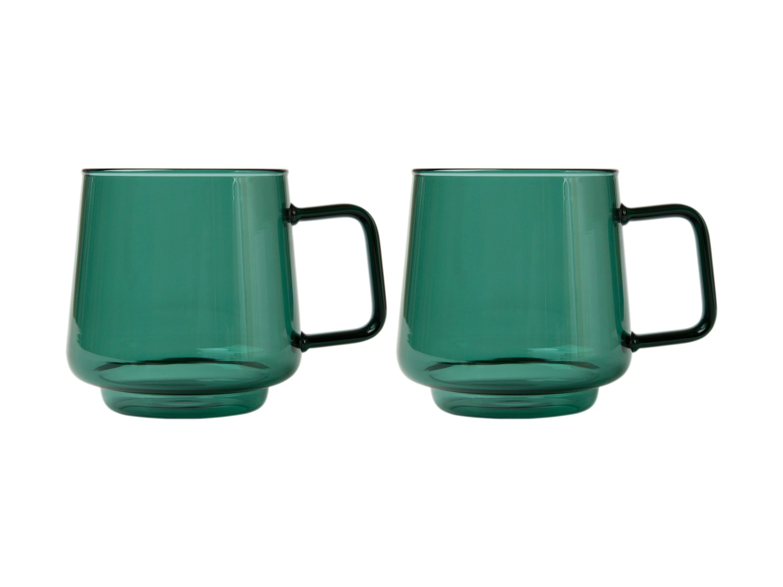 These forest green Sala glass mugs bring a dash of contemporary style to your morning coffee. These striking mugs have a fresh, modern feel, with a tapered shape, square handles and a vintage-inspired forest green shade. Made from quality borosilicate glass, theyโre generously sized for a little extra of your favourite coffee, tea or hot chocolate. Sala is part of our extensive Blend collection.