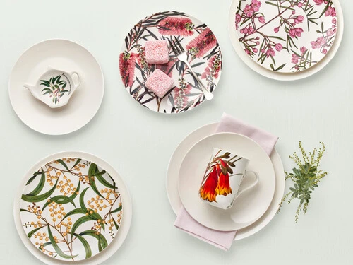 Take a stroll down memory lane with the Botanics collection. Printed with illustrations from the Royal Botanic Garden Victoria archives, the range of fruit and floral designs is an elegant statement for afternoon tea.