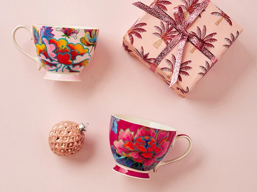 These charming mugs from the Sian collection feature unique hand-painted designs from original artworks by Gabby Malpas. With the artist’s characteristic rich colour and fusion style the designs explore the joy and beauty of flowers, with influences as diverse as Jacobean tapestry, Indonesian batik and Peranakan Chinese porcelain.