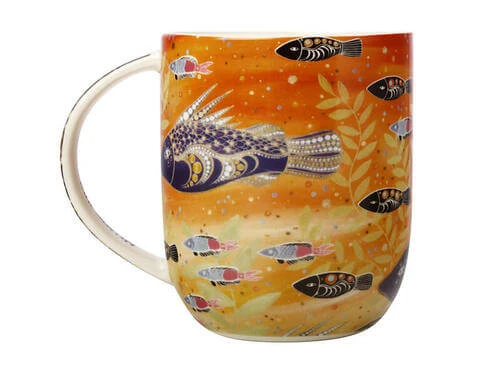 This mug from the Jagaig-Bana-Wabu (Earth-Water-Rainforest) collection features an original design by Australian artist Melanie Hava. Hava’s Aboriginal and Austrian heritage influence her artwork, with inspiration taken from both the reef and rainforest country of Far North Queensland and Austrian architecture and artists like Gustav Klimt. Each design in the range showcases a stunning combination of flora, fauna and landscapes in a vibrant colour palette.
