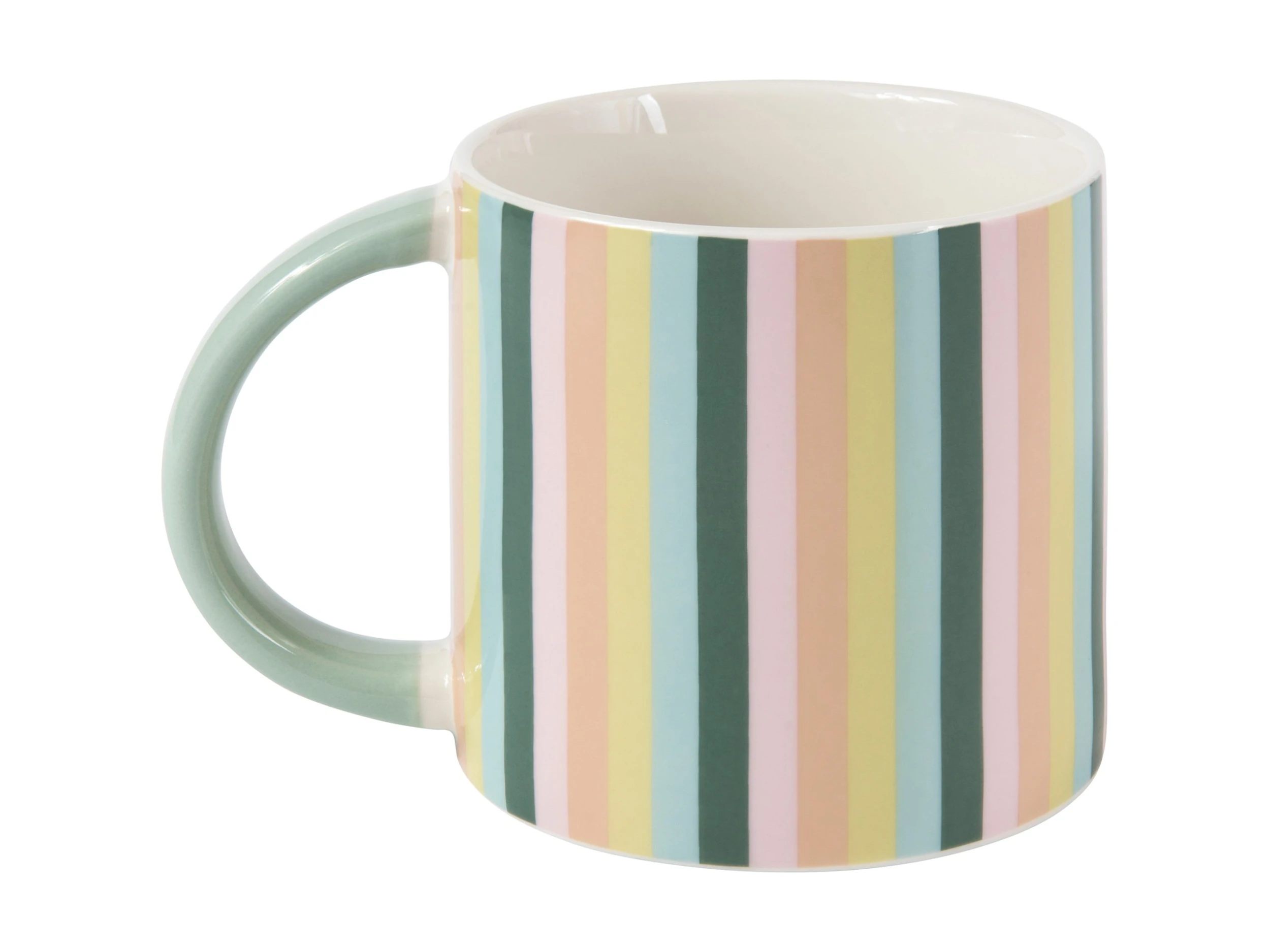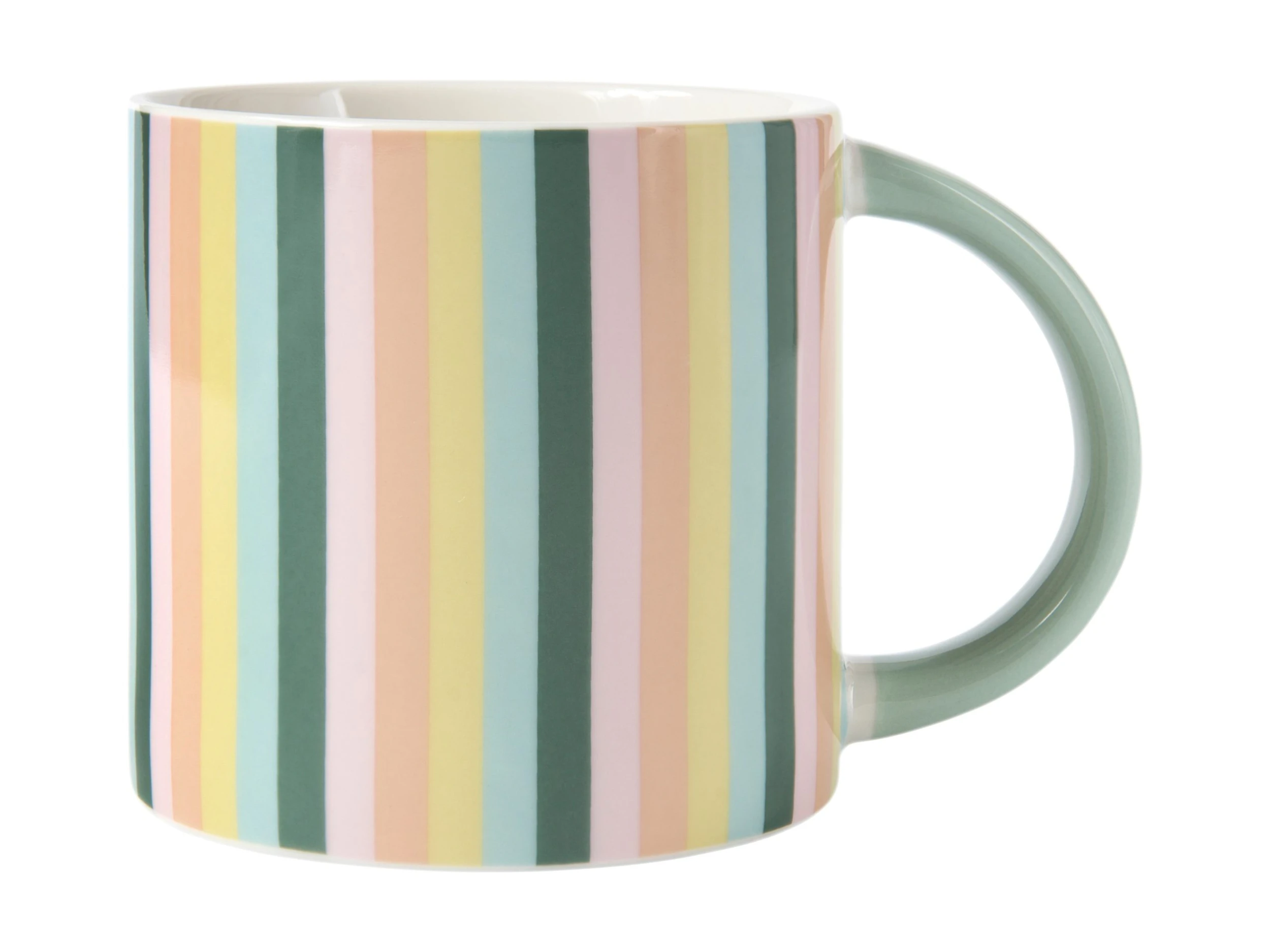 Bring some colour to your morning with this sage Power Pop Stripes mug. Beautifully designed with a retro-inspired palette, it features a charming striped pattern and a Hand-dipped handle. Made from quality porcelain, it has a gently rounded shape โ perfect to wrap your hands around when itโs cold outside. Mix and match it with the other Power Pop Stripes mugs for a collection thatโs full of fun and colour.
