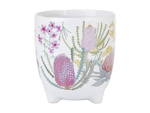 This 10cm plant pot from the Native Blooms collection captures the beauty of Australian flora. Designed in collaboration with Royal Botanic Gardens Victoria, it features a design based on original illustrations of our beloved native flowers. Made from durable stoneware, this gorgeous plant pot has a stylish rounded shape and a footed base. A happy home for your favourite plant, itβs perfect to use either indoors or outdoors.
